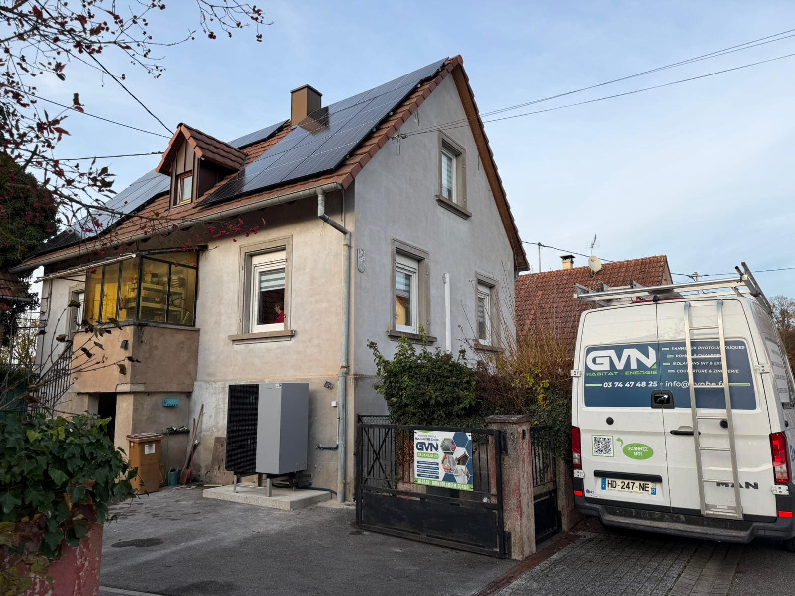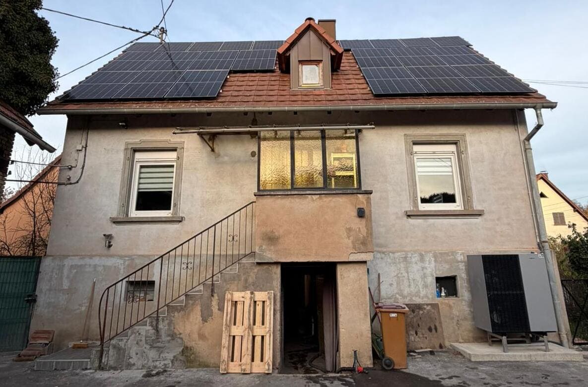 Processus d’installation des panneaux solaires et de la pompe à chaleur sur une habitation à Molsheim, en Alsace